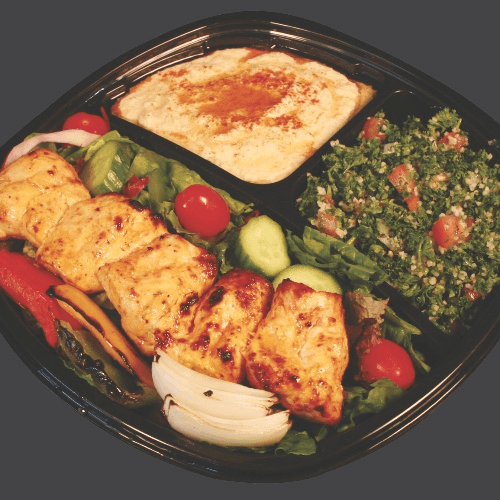 Includes 1 skewer chicken (Joojeh) and side of grilled vegetables