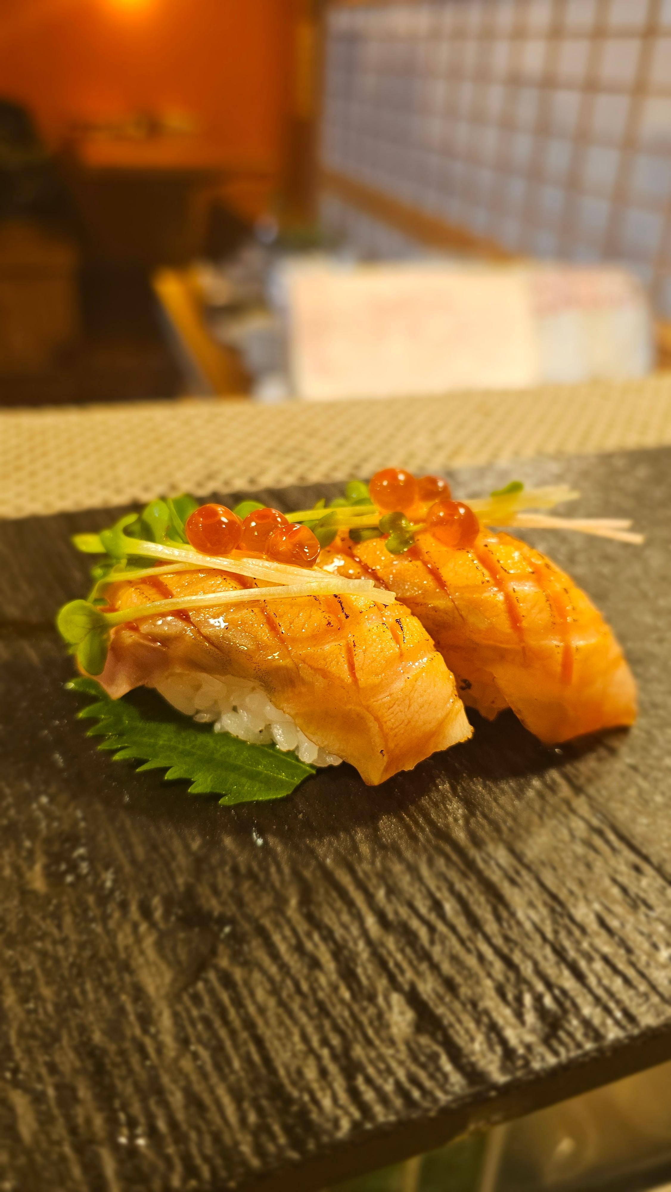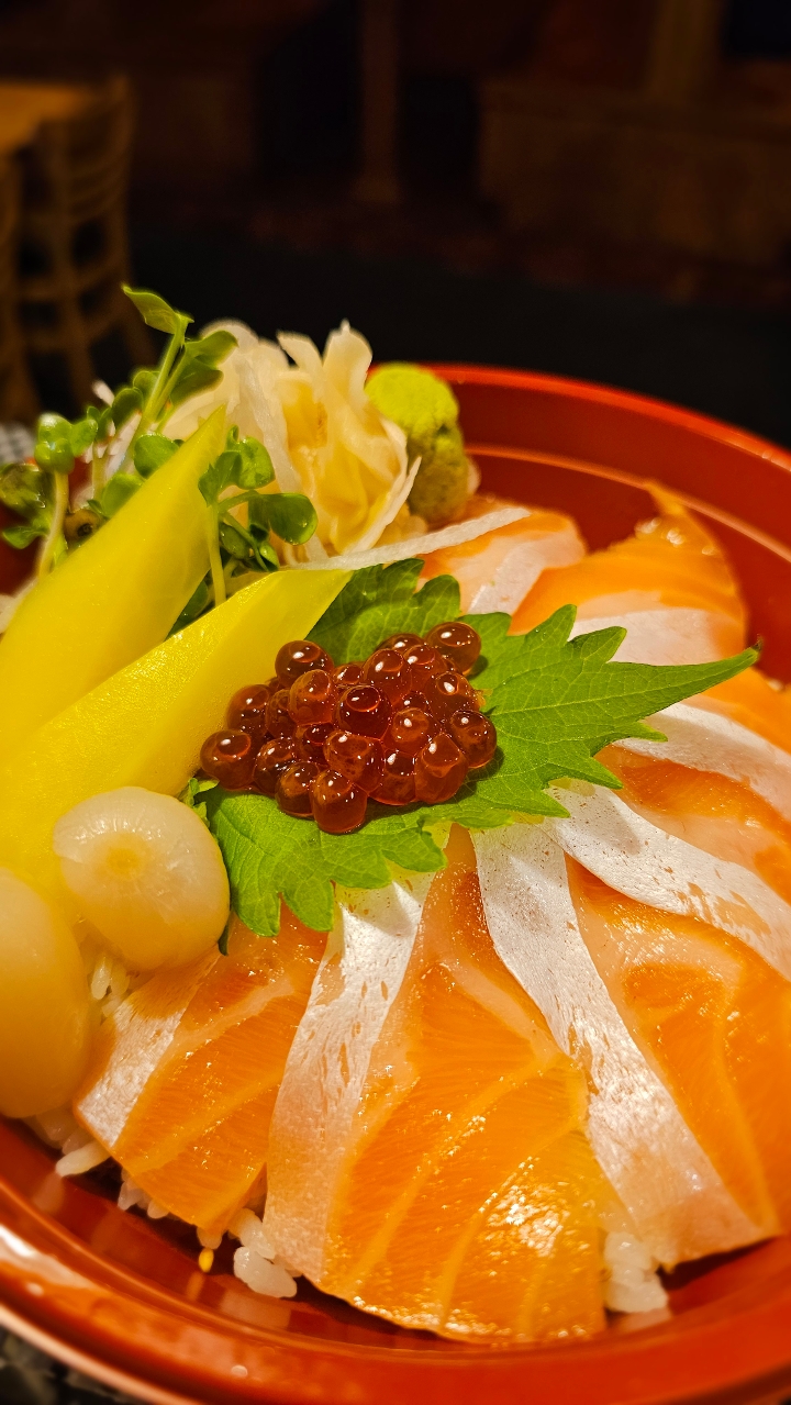Our Faroe Island Salmon sashimi over sushi rice. Contains raw or undercooked ingredients