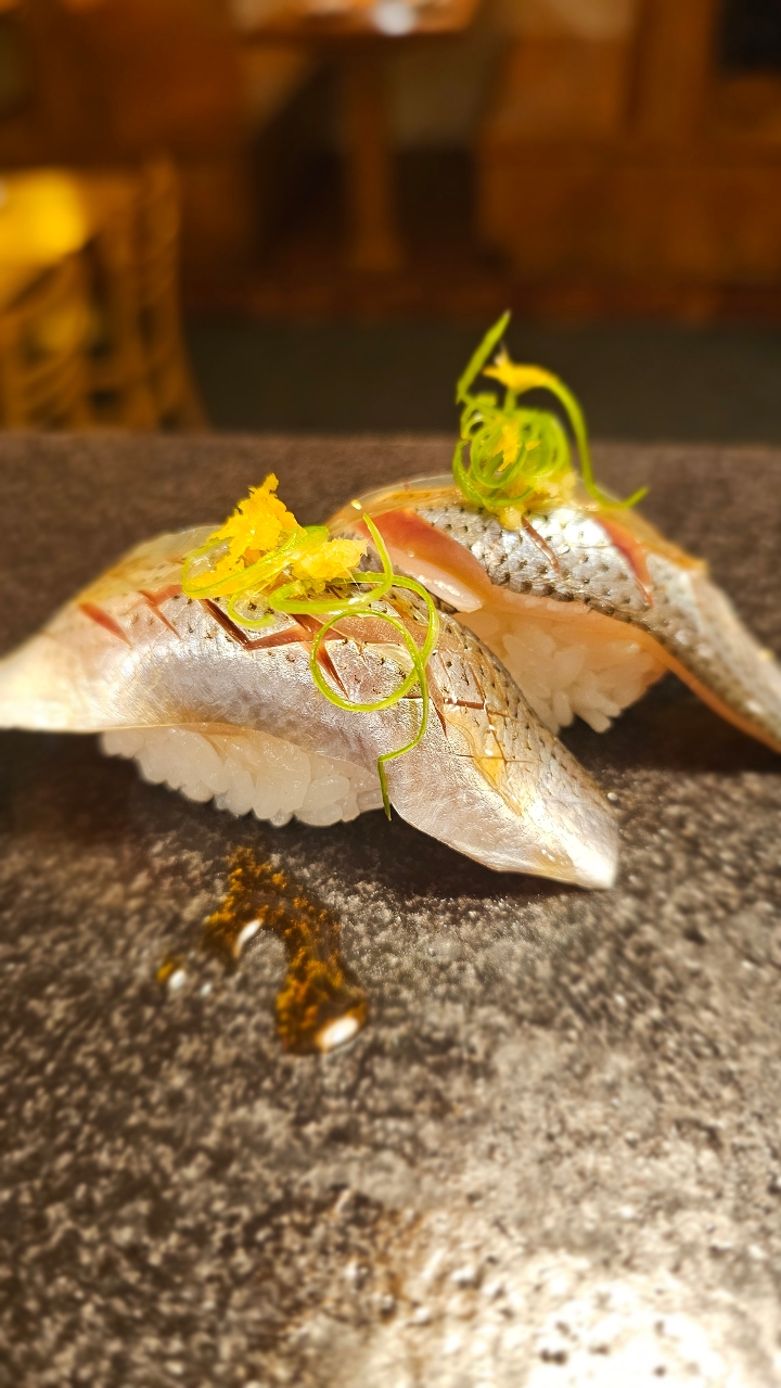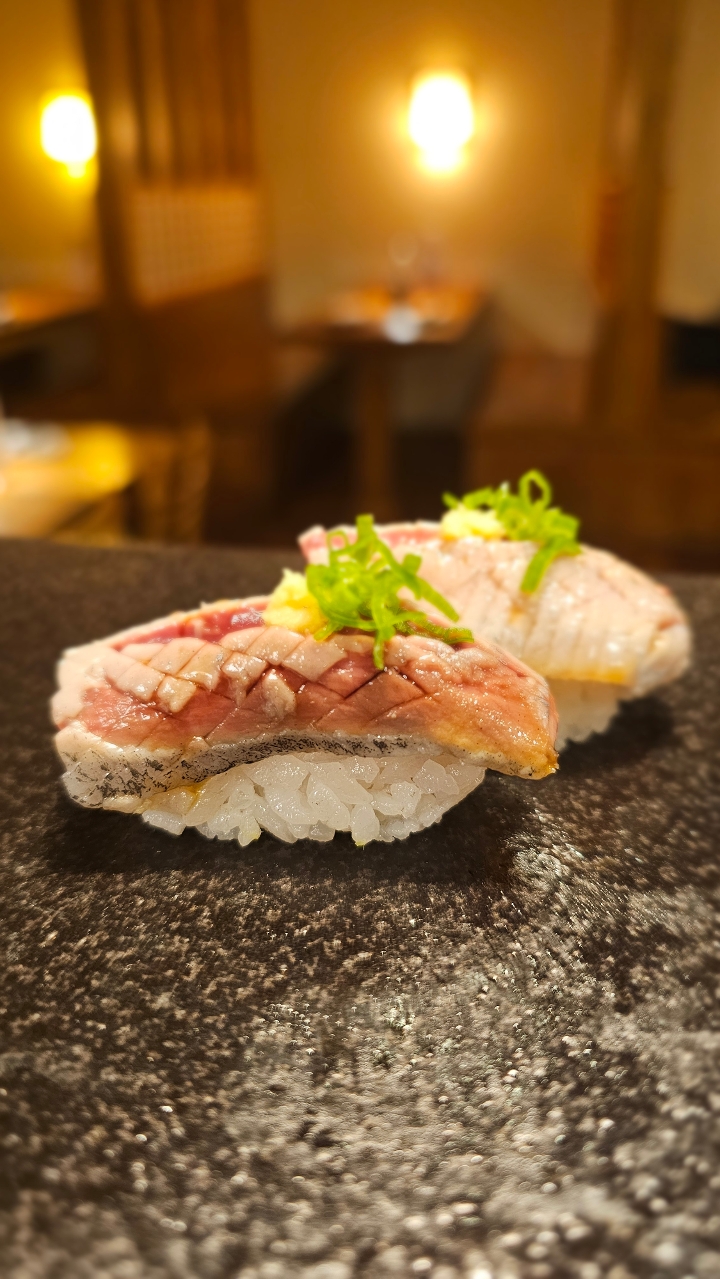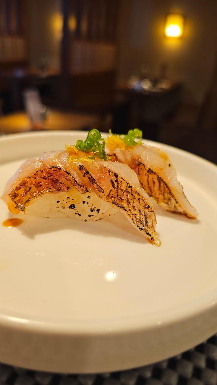 striped jack nigiri sushi.