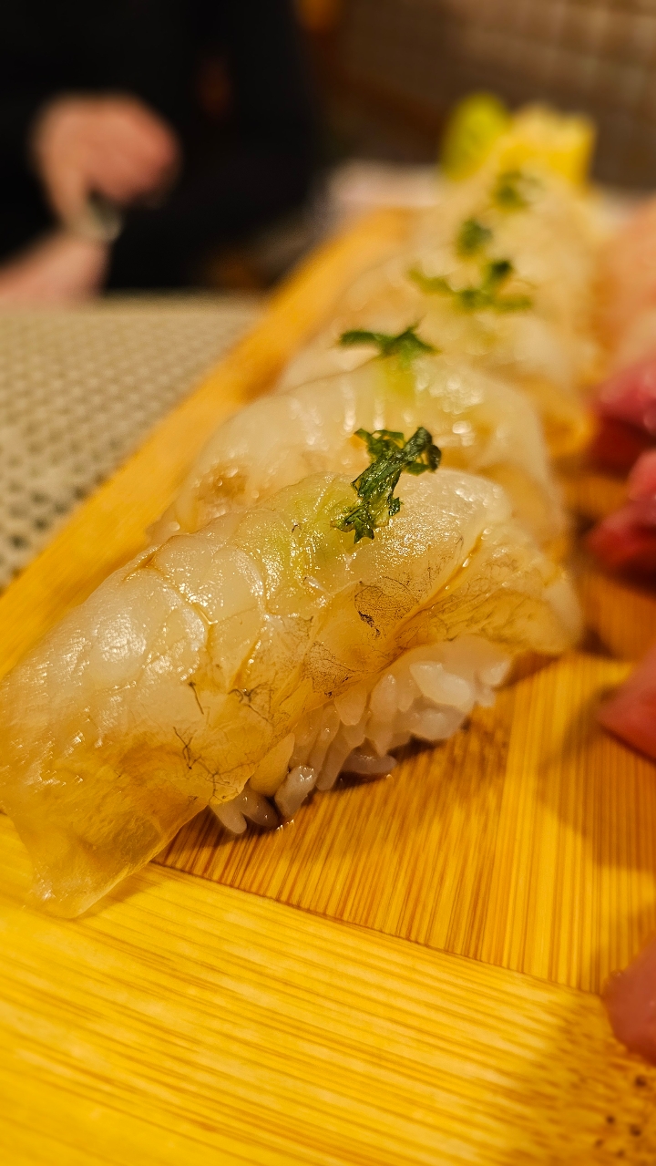 kobu jime flounder nigiri sushi dressed.